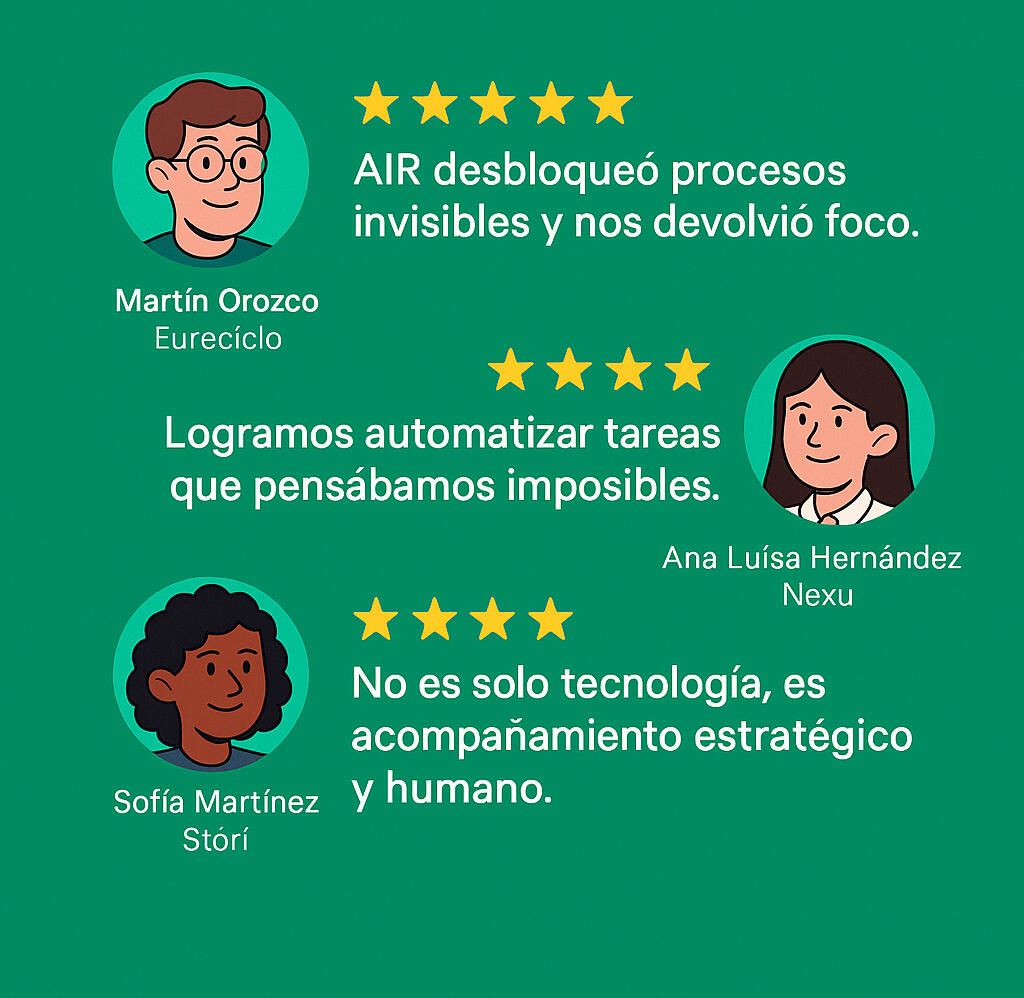 AiR automatiza tus procesos, reduce costos y libera tiempo con inteligencia artificial, automatizaciones y desarrollos aplicada a tu negocio.